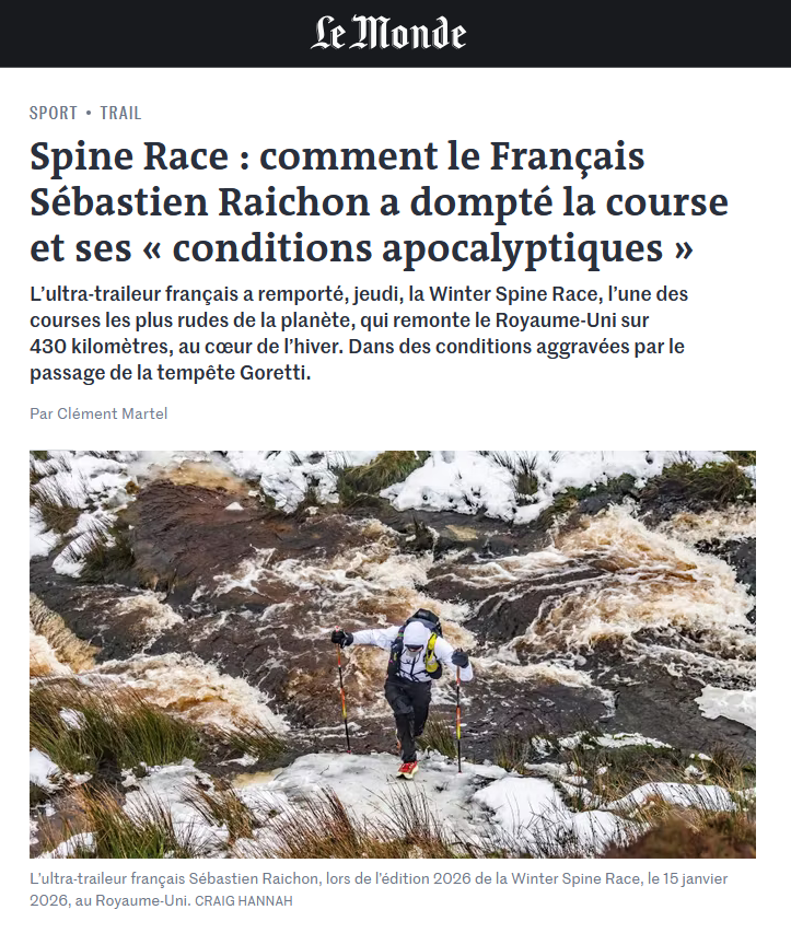 Ultra-trail : Raichon dompte le froid et renverse la Spine Race